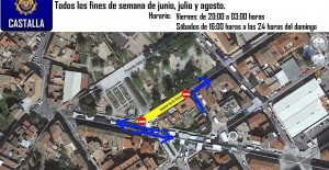 Corte del tráfico en el centro de Castalla. Zona de ocio y esparcimiento.